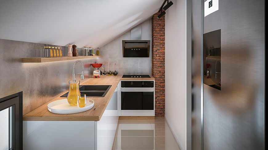 Aprovecha al máximo cada centímetro de espacio en tu cocina, así que intenta subir los armarios hasta el techo para aprovechar al máximo todo ese espacio de almacenamiento. Otra ventaja de elevar los cajones es que, además de ganar espacio de almacenamiento, no tendrás espacio libre innecesario entre los armarios y el techo, ya que estos espacios pueden llenarse fácilmente de grasa y son muy difíciles de limpiar.