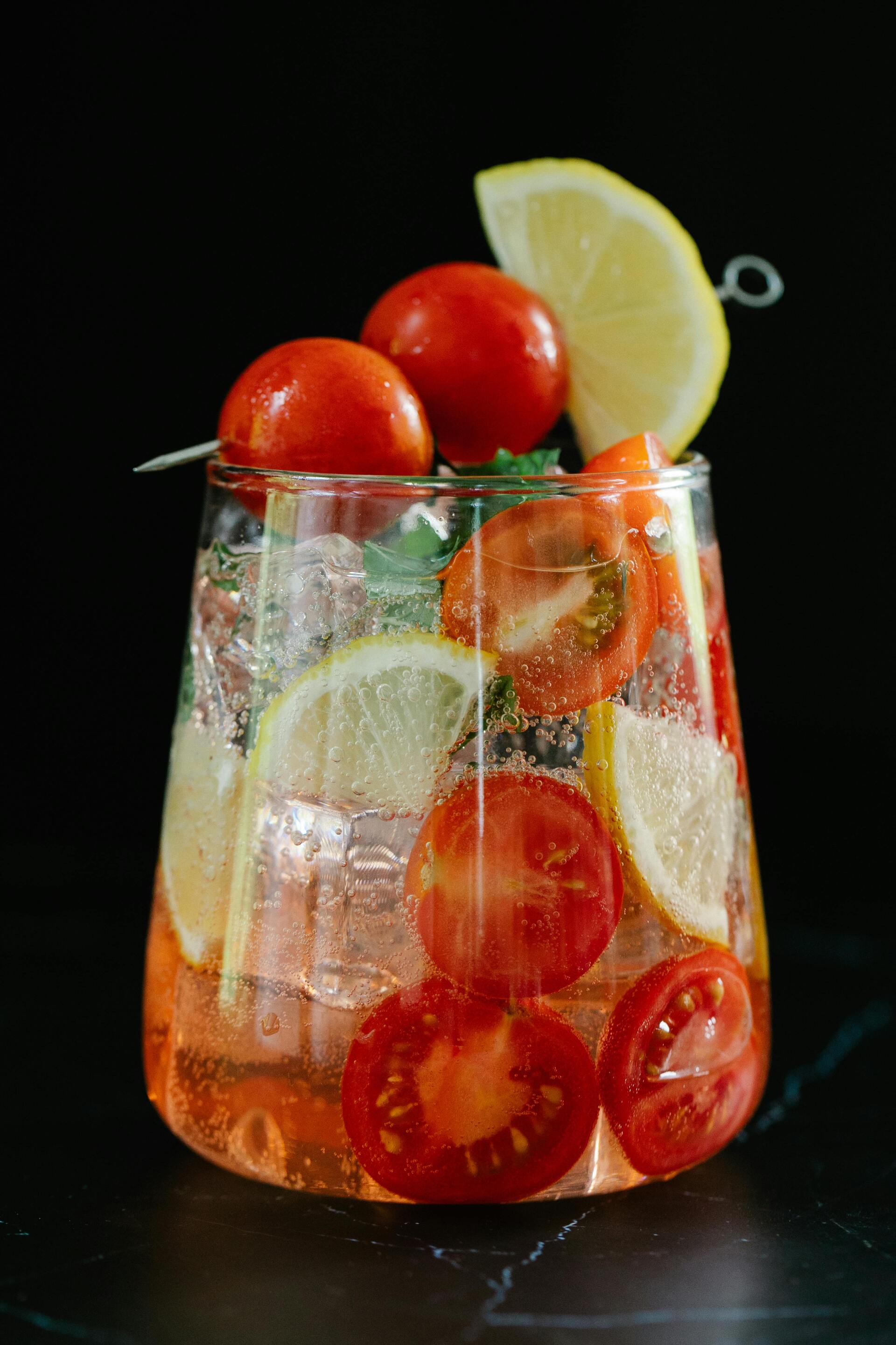3. Agita bien y cuela en un vaso lleno de hielo.