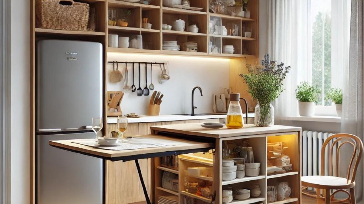 Optar por muebles multifuncionales es esencial en una cocina pequeña. Una isla con almacenamiento integrado, mesas plegables o sillas apilables son perfectas para ahorrar espacio sin sacrificar comodidad. Los muebles que cumplen varias funciones ayudan a mantener el área despejada, permitiendo que se utilice para diferentes actividades, como cocinar, comer o trabajar.