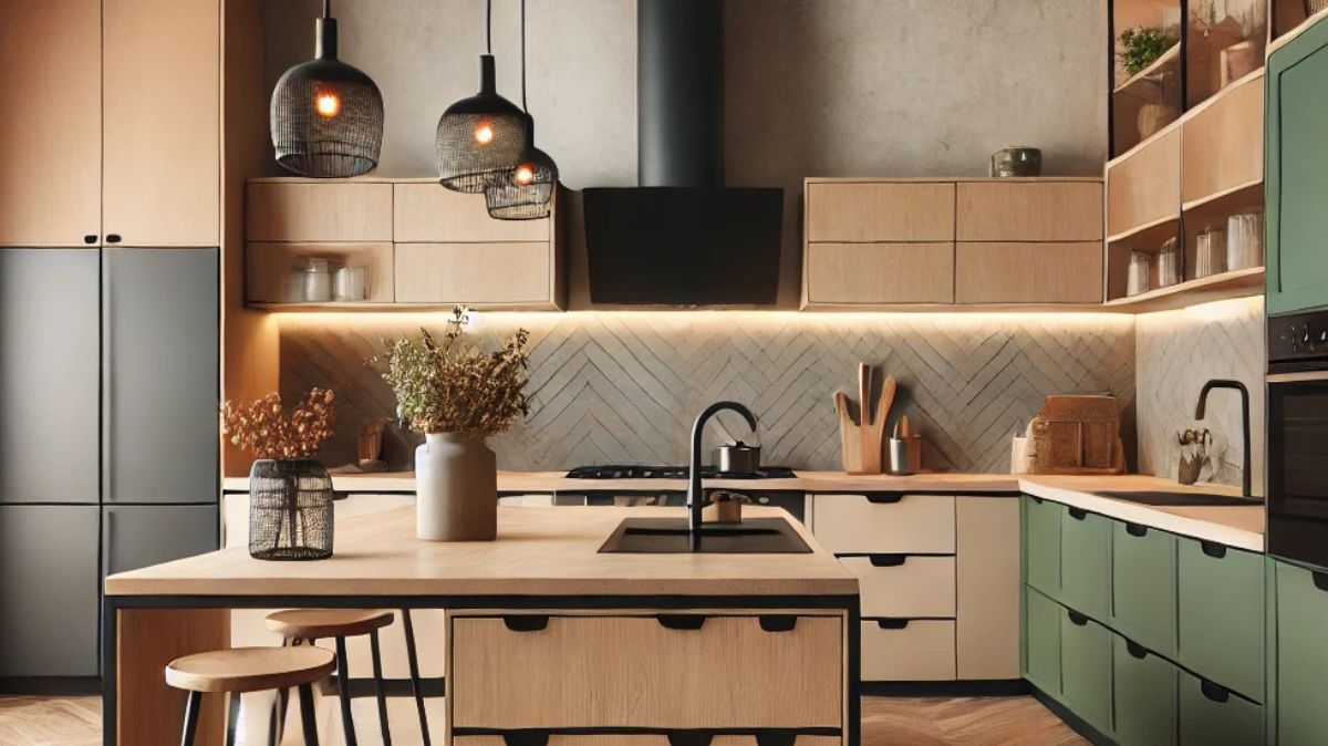 Las paletas de colores para cocinas en 2025 reflejan un equilibrio entre lo natural y lo sofisticado. Tonos tierra como beige, terracota y marrón chocolate se combinan con verdes profundos y azul petróleo, aportando una sensación de calidez y elegancia. En cuanto a los materiales, la madera recuperada sigue siendo la estrella, junto con el mármol con vetas marcadas y el acero inoxidable negro mate, que aportan un toque moderno y minimalista.