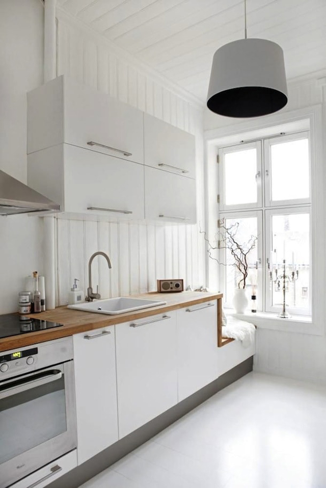 Uno de los aspectos claves para que visualmente la cocina parezca más grande es la luminosidad. La luz natural proporciona a la estancia una mayor amplitud. En caso de no disponer de ventanas, podemos hacer alguna pequeña. Si en nuestro caso no pudiéramos hacerla, porque no hay hueco o porque es imposible, siempre podremos recurrir a la luz artificial. Nosotros recomendamos que, en ese caso, sean con bombillas led, ya que ofrece una luz más consistente y más barata.