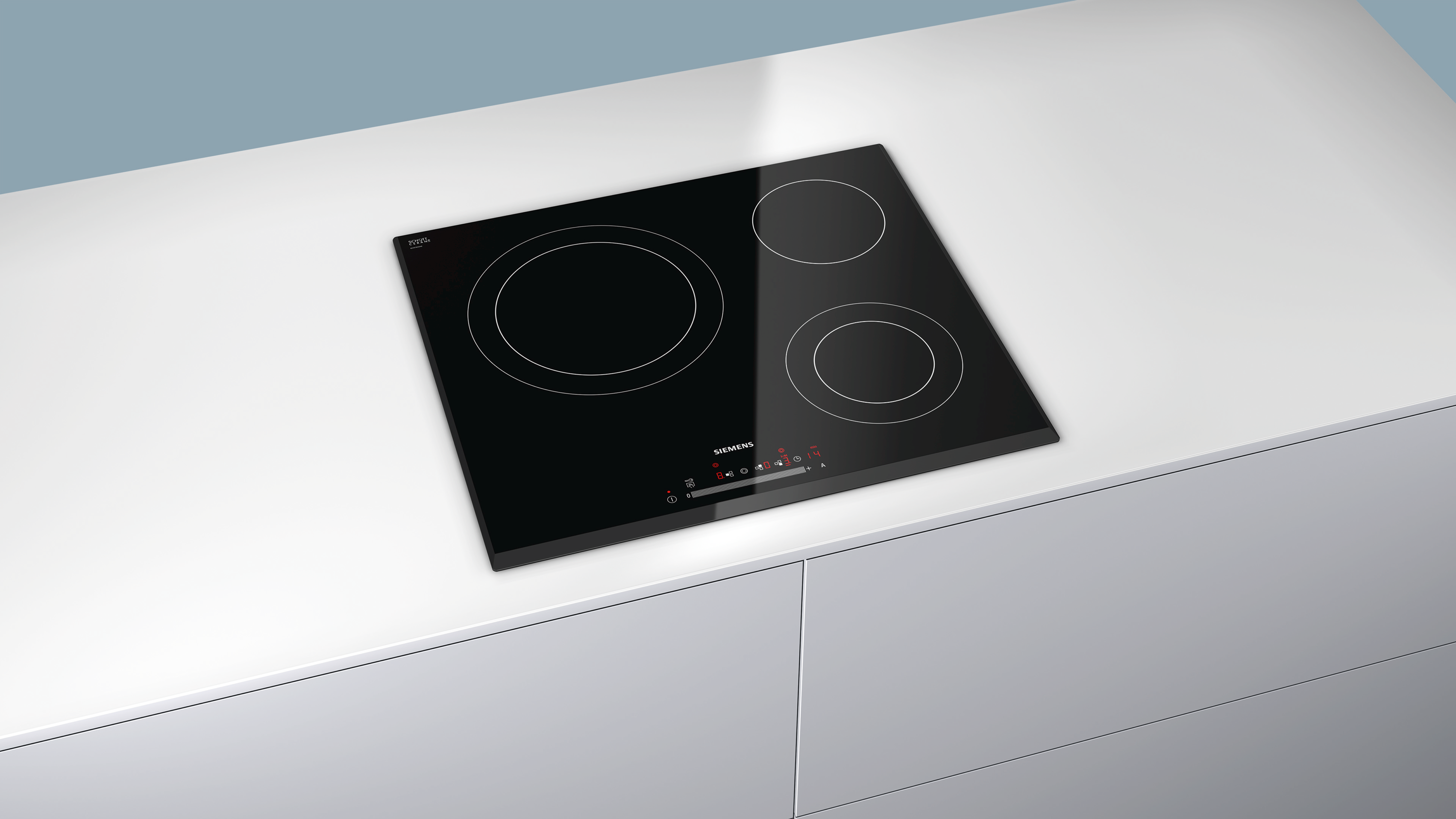 Otra vitrocerámica muy recomendable es la Siemens ET651FK17E. Su precio está rebajado en más de 100 euros respecto a la anterior e incorpora también muchos elementos interesantes. En primer lugar, tiene una potencia de 2.000 vatios y tres zonas de cocción (la mayor de ellas de 28 centímetros). También incorpora una tecnología TouchSlider, con la que solo tendrás que deslizar el dedo para elegir la potencia. Además, cuenta con bloqueo de seguridad infantil y para limpieza, así como con una autodesconexión de seguridad.