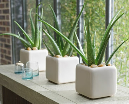Aloe Vera: esta planta es perfecta para cuidar de la salud de nuestra piel, ya que la refresca y la hidrata, además de ser muy útil para tratar las quemaduras y las cicatrices. Por ello es recomendable poseer una planta de Aloe en casa. Necesita un rincón bien iluminado (pero sin que éste le dé de lleno). Cuidado con el frío y con los cambios bruscos de temperatura, ya que no los aguanta demasiado bien. Caben en pequeñas macetas, pudiendo colgar varios en jardineras colgantes y así hacer de esta planta un elemento decorativo.