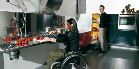En ese caso no hay que olvidar a las personas con movilidad reducida que necesitan una silla de ruedas para poder moverse. Los fabricantes de cocinas se han puesto manos a la obra en cuanto al diseño de cocinas sin barreras y hoy en día existen en el mercado cocinas adaptadas a personas con minusvalías y discapacidades físicas para facilitarles una movilidad y comodidad total en las funciones diarias de la cocina, sin que necesiten ayuda.