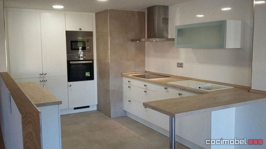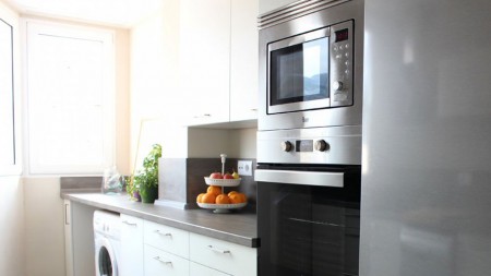 Una de las disposiciones más utilizadas debido a que es muy práctico. Poniendo el microondas y el horno en columna se ahorra espacio y se tiene todo en un lugar concreto, con lo que la sensación de orden aumenta.